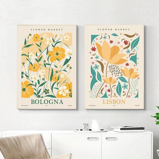 These botanical canvas posters feature beautiful floral arrangements captured at various markets. The intricate details and vibrant colors of the flowers are artfully portrayed on high-quality canvas. They add a touch of natural beauty to any room, making them a perfect gift for plant lovers and home decorators alike.